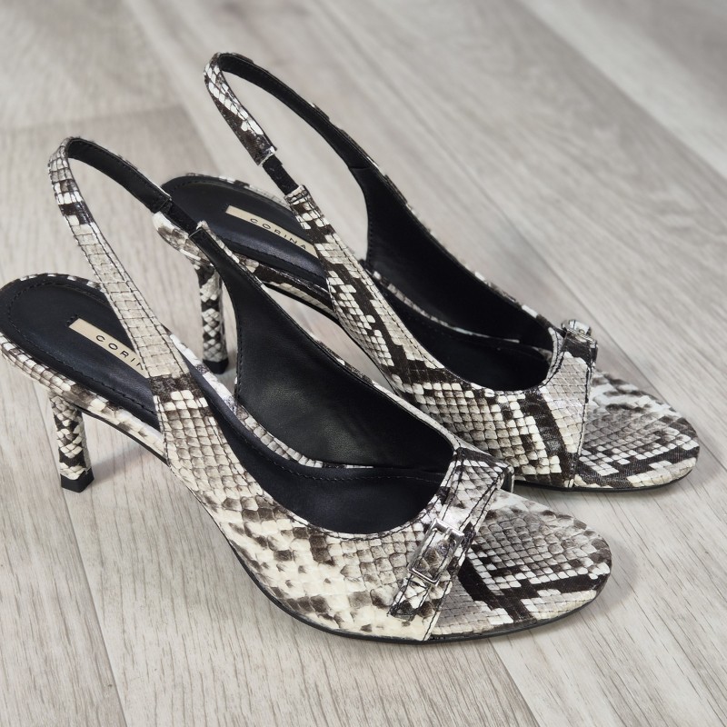 Sandalia de tacón en material sintético , 9 cm altura de tacón. (CORINA )