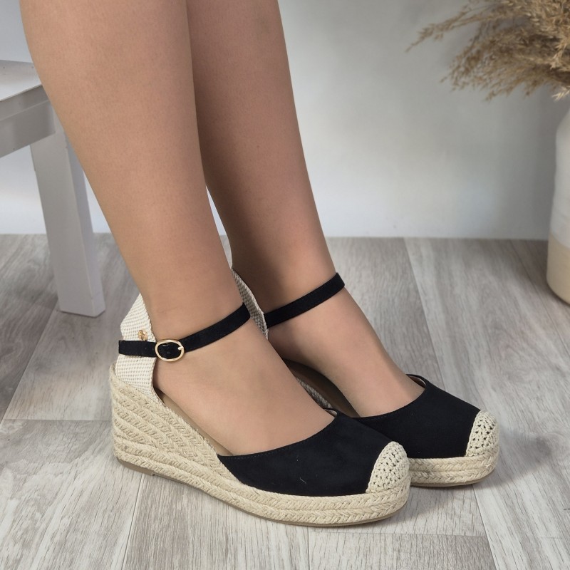 Cuñas con suela de esparto en antelina , 8 cm altura de tacón y 2 cm de plataforma .
