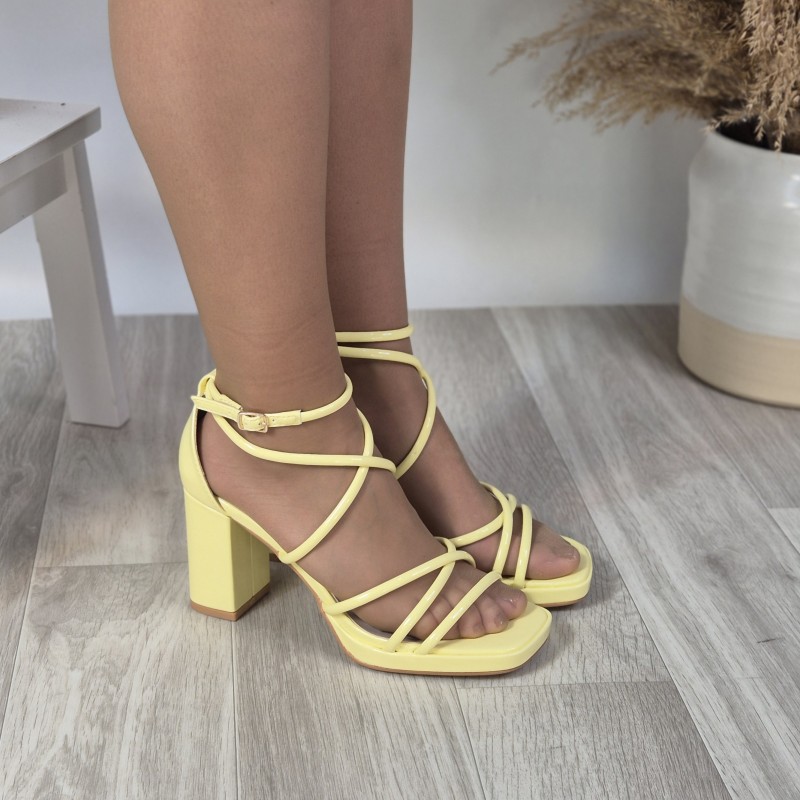 Sandalia de tacón en material sintético , 8,5 cm altura de tacón y 1,5 cm de plataforma .