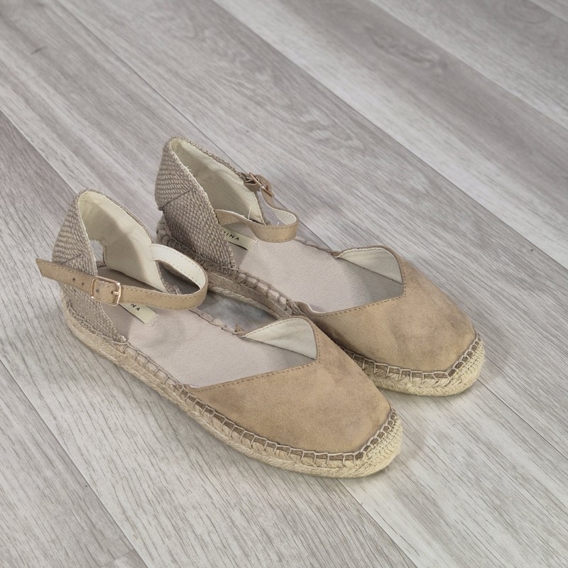 Alpargata en antelina con suela de esparto . (CORINA)