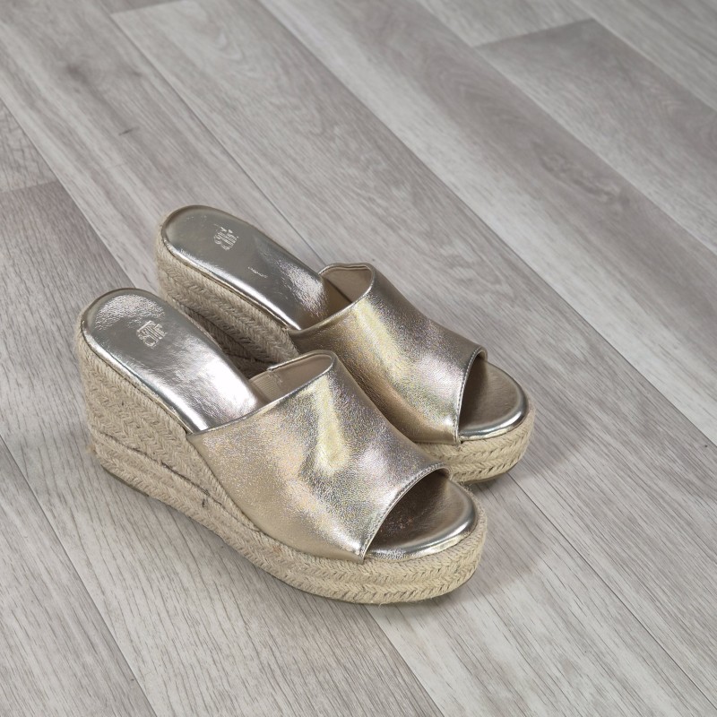 Cuñas en antelina con suela de esparto , 9cm altura de tacón y 3cm de plataforma .