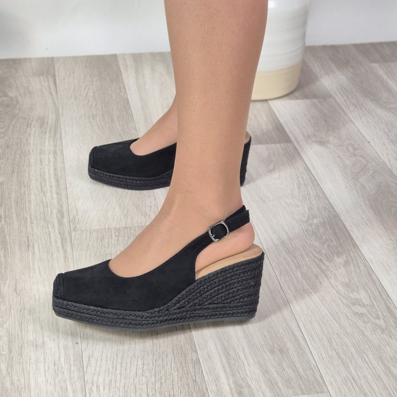 Cuñas con suela de esparto en antelina , 7,5cm altura de tacón y 2 cm de plataforma .