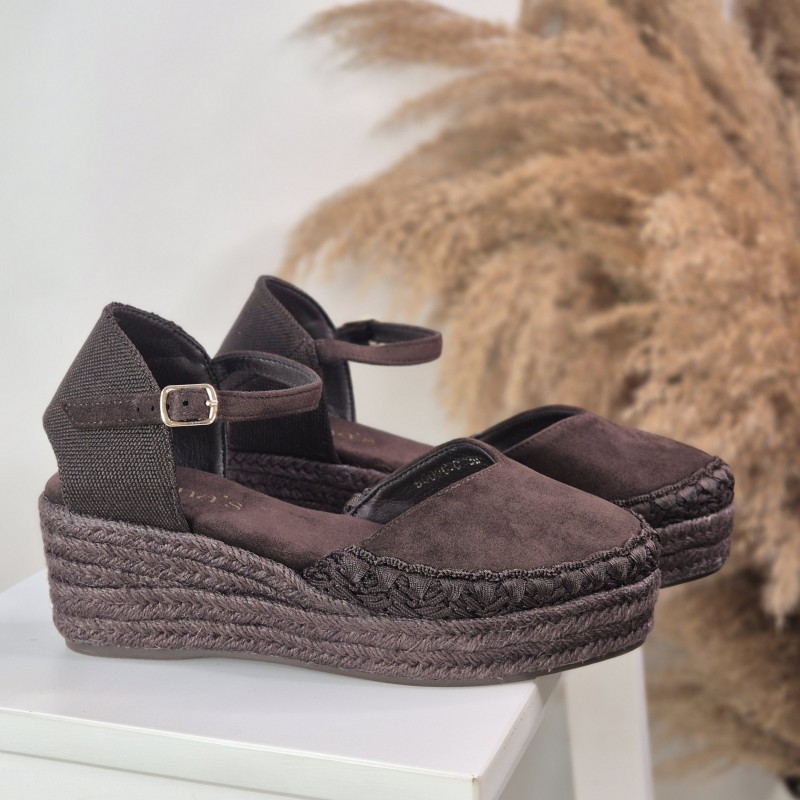 Cuñas en antelina con suela de esparto , 3cm altura de tacón y 3cm altura de plataforma .