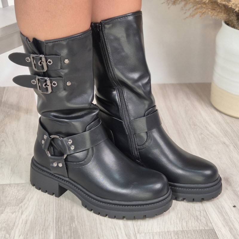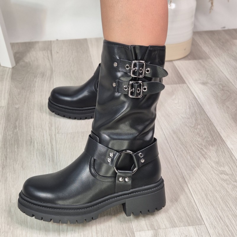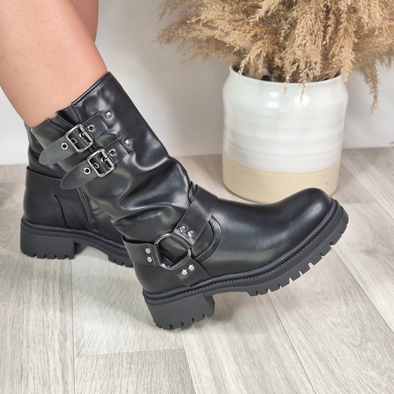 Botín en material sintético , 4 cm altura de tacón y 2 cm altura plataforma.